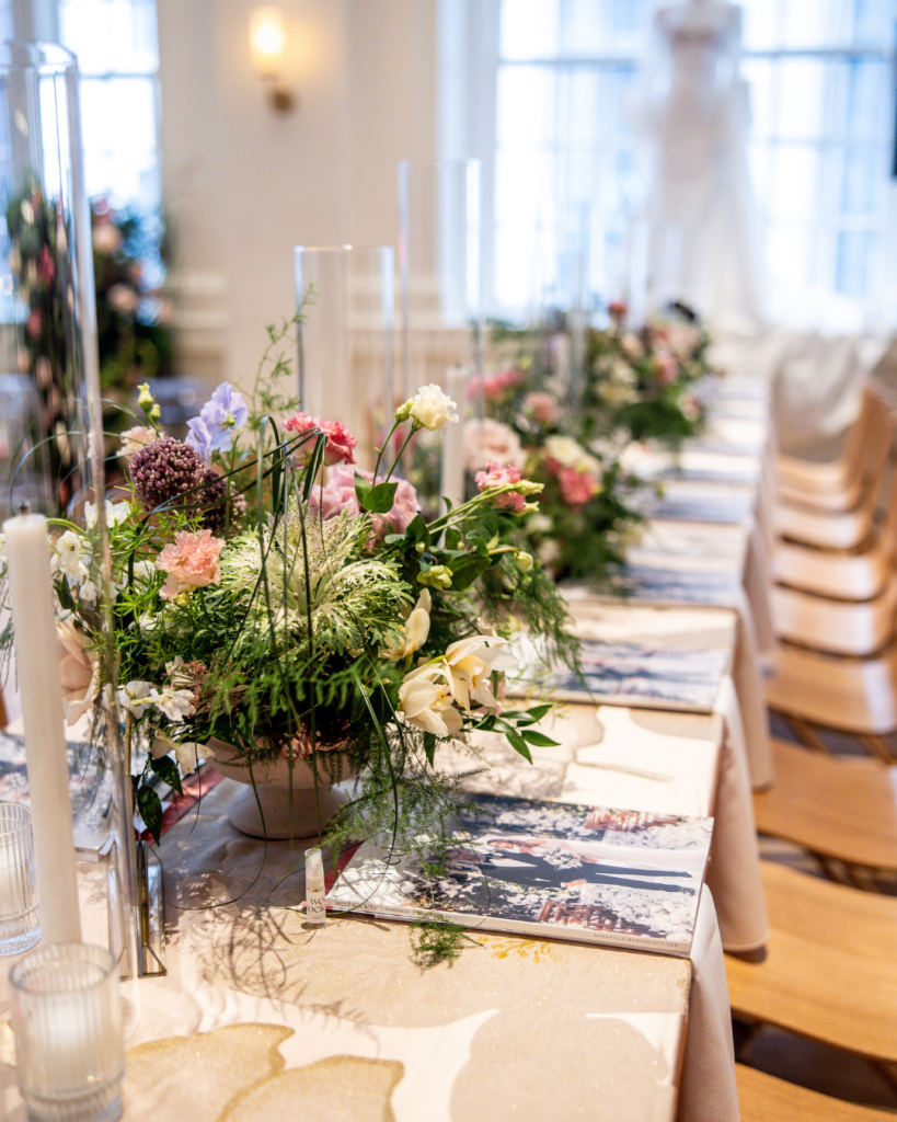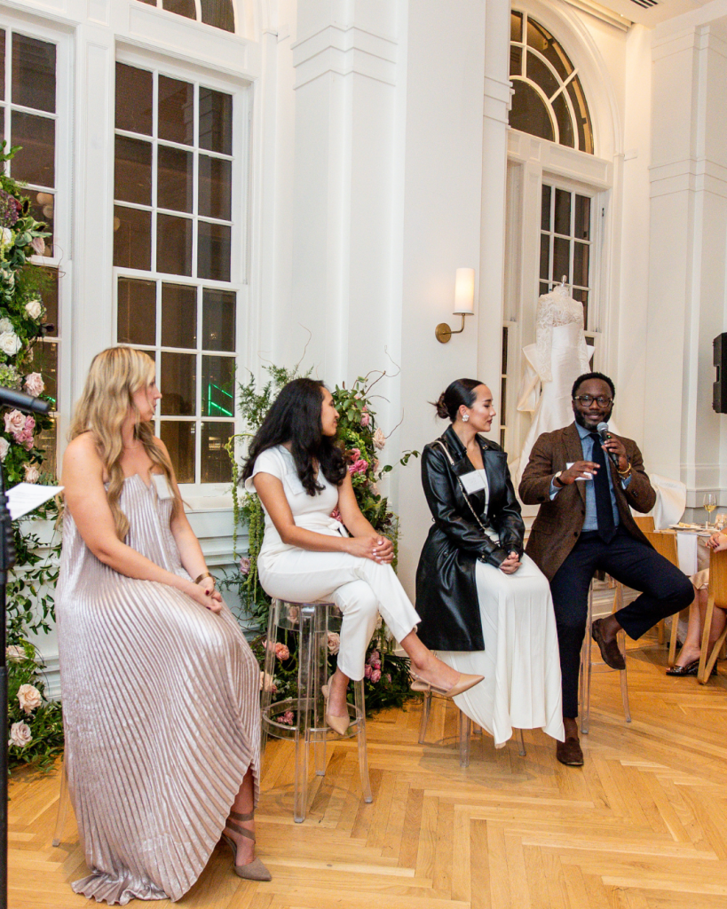 One of the highlights of the evening was the panel discussion, which brought together some of Nashville’s most talented voices in the wedding industry. The conversation featured Lauren Sartain of LMA Designs, Priscilla Stewart of Infinity Hospitality Group & The Estate at Cherokee Dock, Bentley Caldwell of Bentley Caldwell Styling, and Cynthia Midori of Cynthia Midori Art & Design, who offered a unique perspective as both an artist and a recent bride herself. Each panelist shared valuable insights into their craft, from design inspiration and wedding trends to the importance of authenticity, collaboration, and connection with each couple they work with. The conversation set the tone for the evening, leaving guests both inspired and energized.