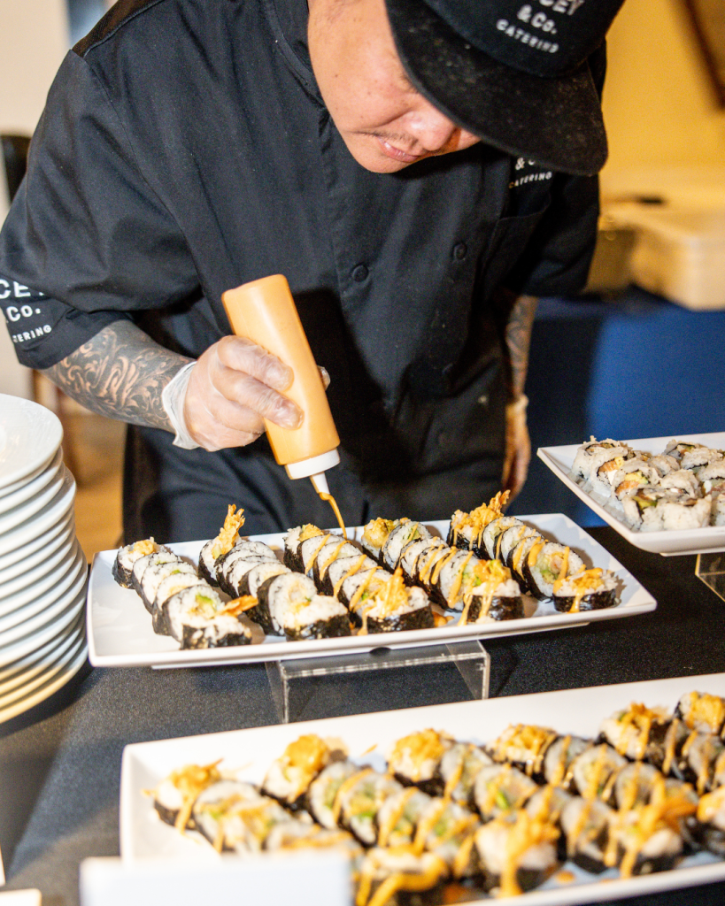 Guests enjoyed a culinary experiences curated by the Noelle team, featuring delicious canapés and handcrafted cocktails, along with fresh sushi by Ricey & Co. Catering and decadent cakes from Sarah’s Baking Co. Each bite was as pretty as it was delicious and a perfect pairing to the evening’s elevated atmosphere.
