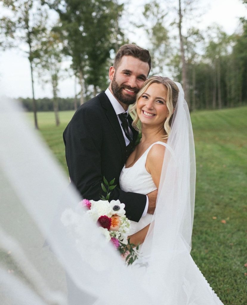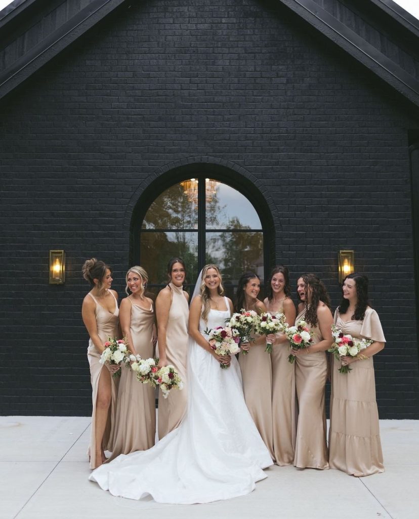 Aidan and Dillon’s wedding day was all things sophistication and love. The ceremony featured a dreamy white and green floral piece that set the stage perfectly, while pops of color added a romantic touch throughout the day. Her bridesmaids shined in champagne-colored dresses, each with their own style, bringing the perfect mix of modern and timeless vibes. And the venue? Its chic design couldn’t have been a better match for their color palette and overall feel.