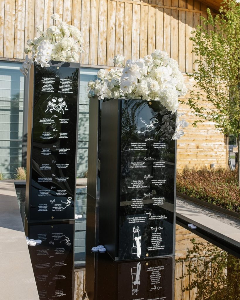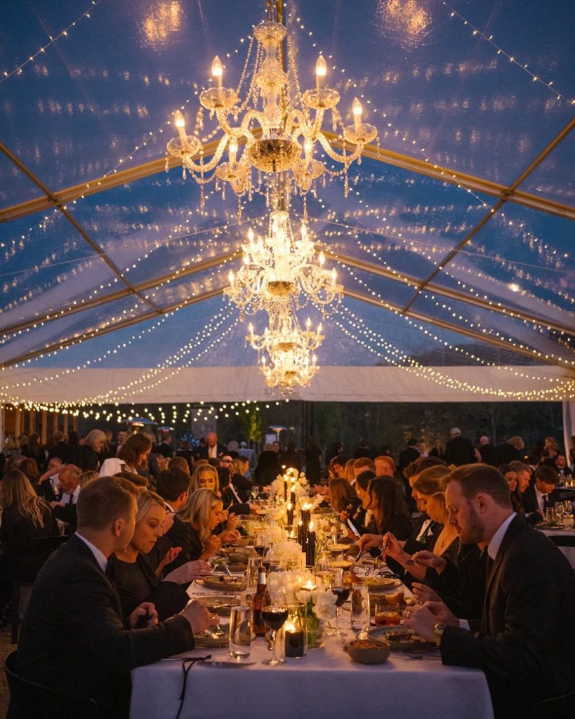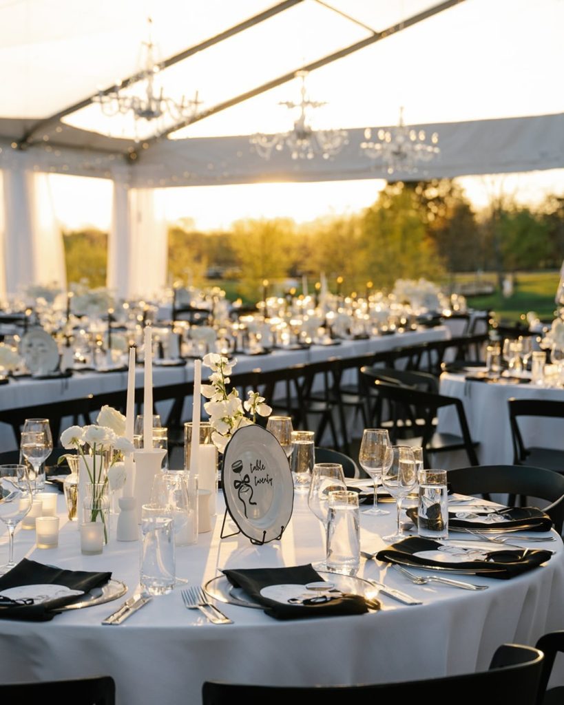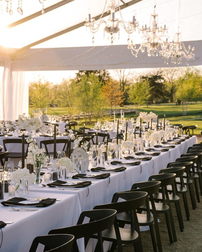 The celebration continued with a reception that perfectly balanced sophistication and romance. Long, candlelit tables created a beautiful ambiance, while classic black-and-white design details set the mood for an effortlessly chic evening. Every moment felt polished yet warm, creating an unforgettable atmosphere as family and friends gathered to toast the newlyweds!