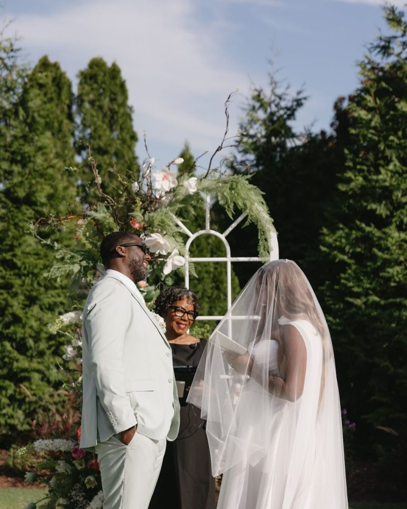 The couple exchanged vows in a sweet and meaningful ceremony led by Living Ceremonies, setting the tone for a day filled with love and connection. Complementing the overall aesthetic was the bride’s stunning look from Luxe Redux Bridal.