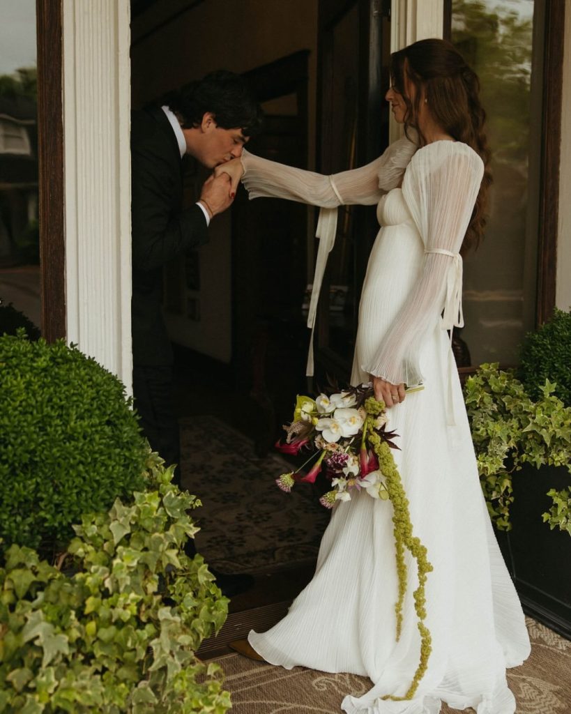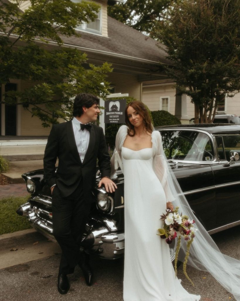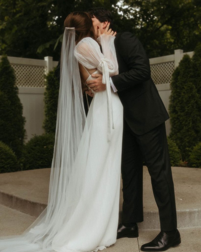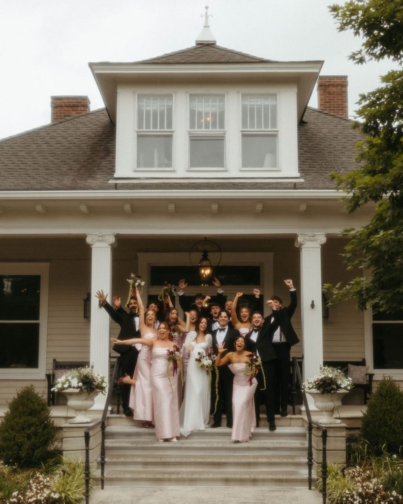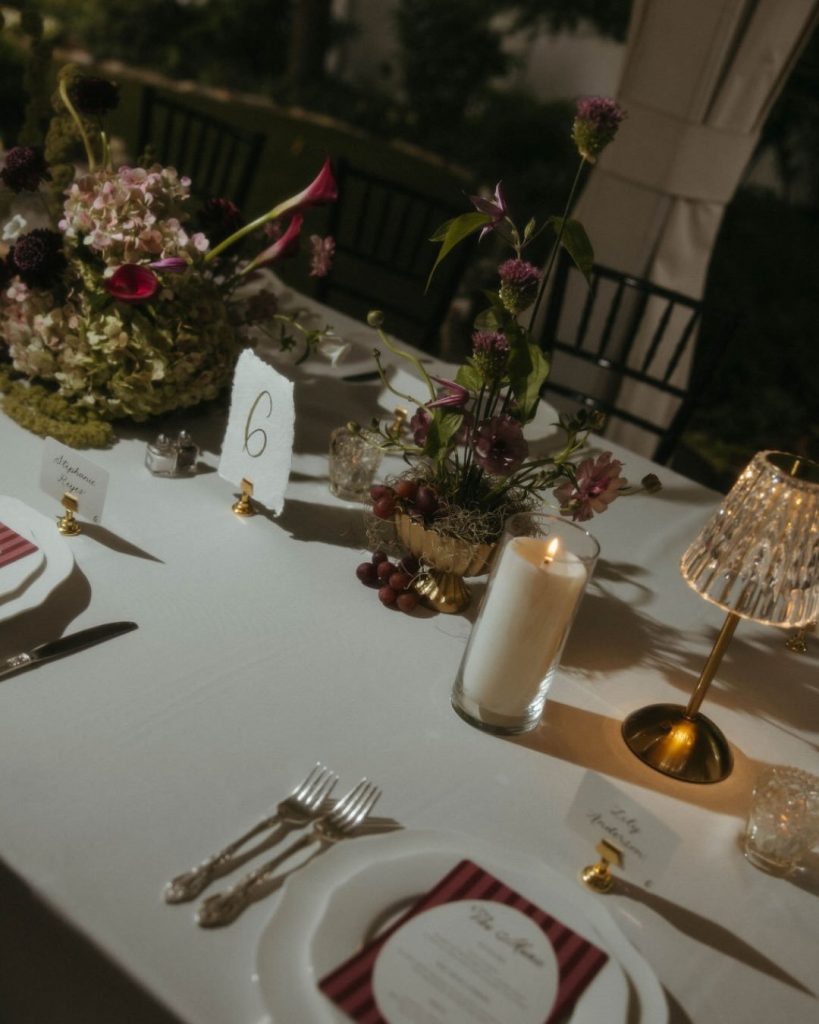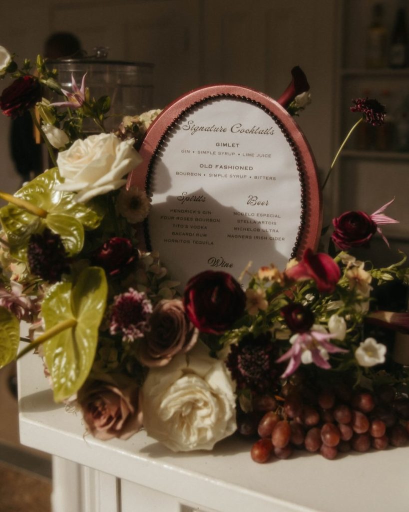 Sophia shared, “After a rainy morning and the possibility of moving things indoors, the sun came out just in time and stayed with us the entire day. Reds and pinks have always been my favorite colors, so having those tones woven throughout the day — from the florals to our wedding party and family — made it feel even more personal. Being surrounded by our favorite people made it the perfect day.”