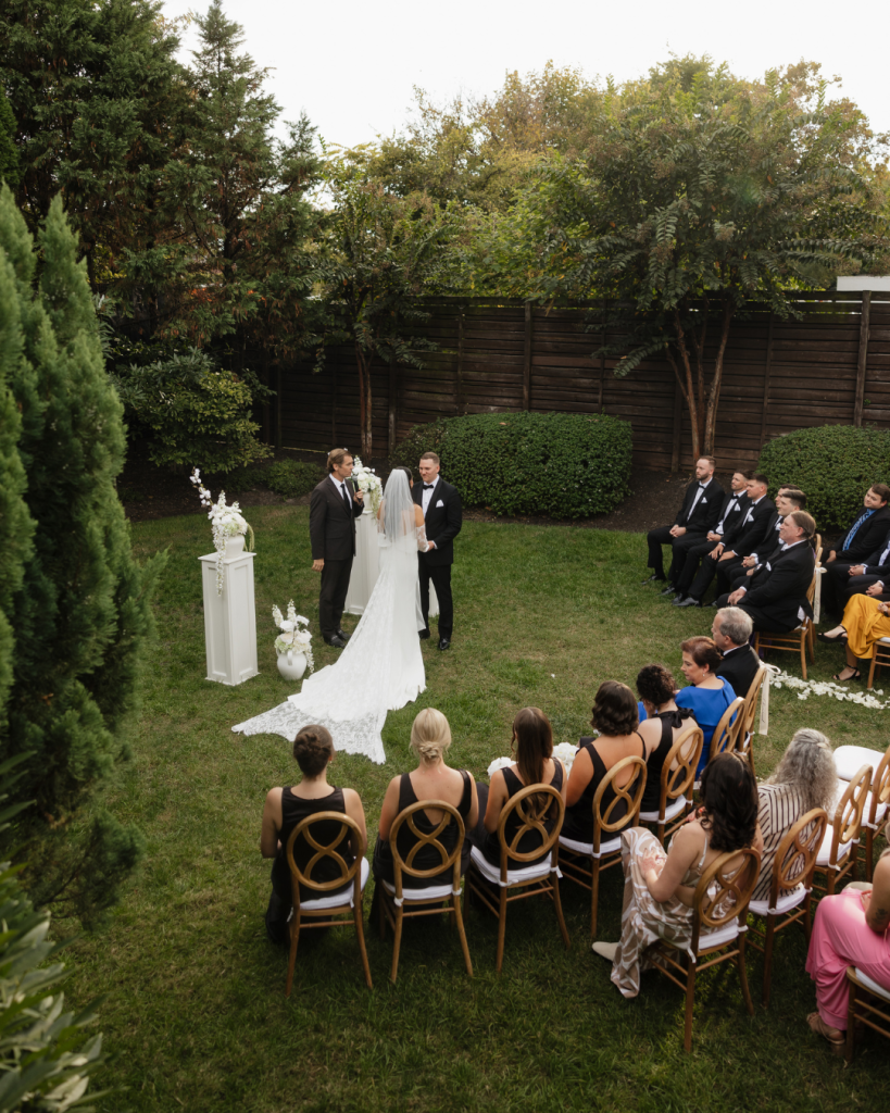 From the thoughtfully selected rentals from Curated Events Nashville to the elevated bar experience supplied by RED Wine & Spirits, each element worked in harmony to bring their vision to life. The design embraced a minimalist approach, allowing crisp tones, subtle textures, and meaningful details to shine. Beauty looks by 931 Bridal Co. complemented the aesthetic perfectly, while Todd Rodarmel of Nashvows led a heartfelt ceremony that set the tone for the entire day.