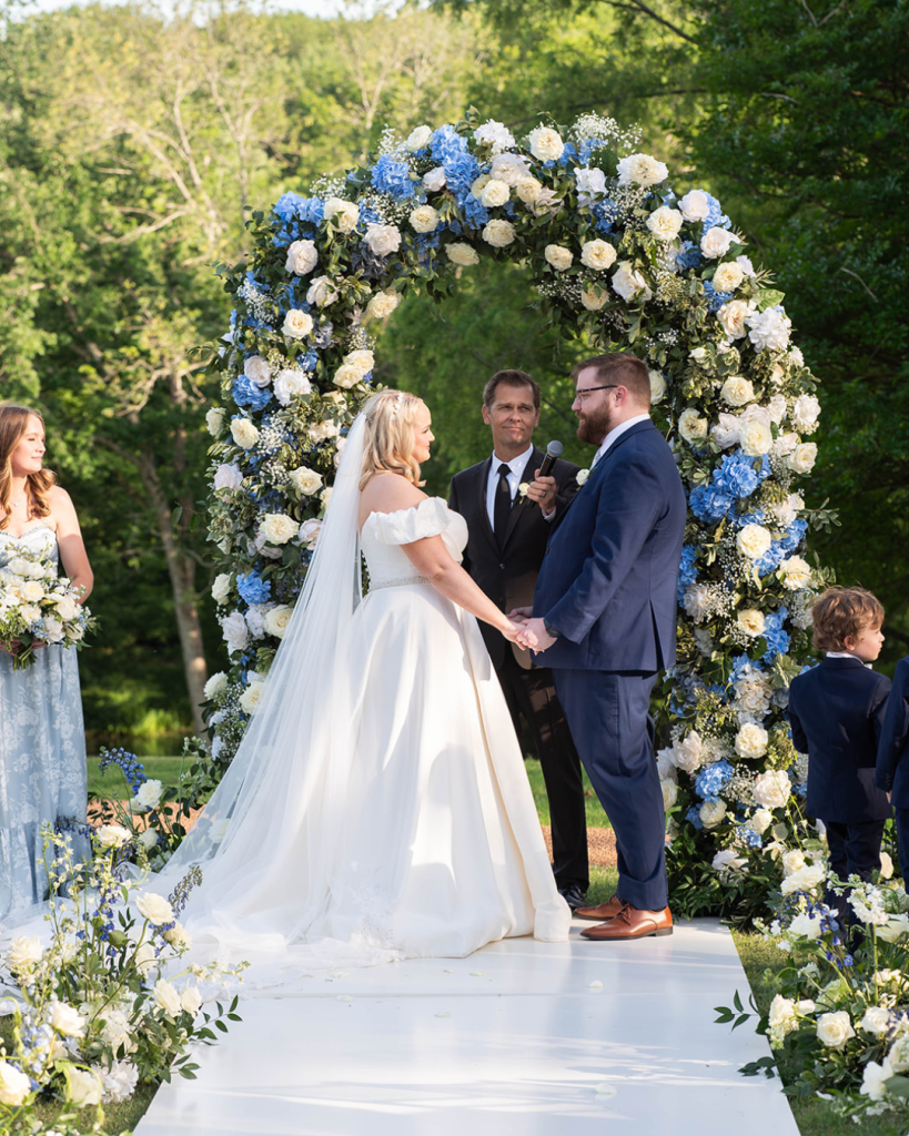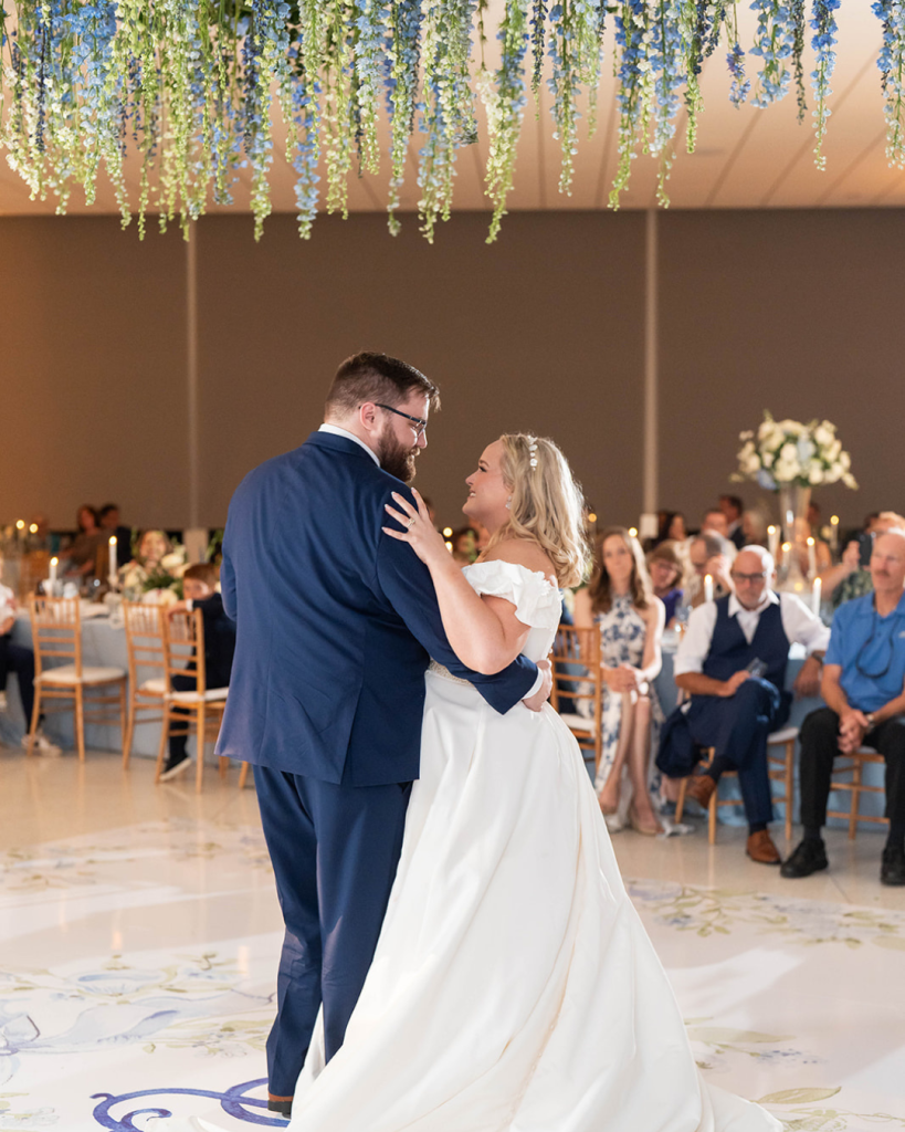 The florals by T Villager Designs were nothing short of show-stopping, setting the tone for a celebration filled with beauty. From the ceremony to the reception, their artistry was on full display, with flowers that were as spectacular and abundant. Curated Events elevated the design even further, providing decor and rentals that tied every detail together perfectly with beautiful blue details.