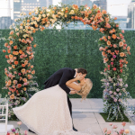 In the heart of Nashville at the Country Music Hall of Fame, a wedding that perfectly blended Western and Indian traditions took center stage, offering a beautiful fusion of cultures. From the meticulously planned details to the stunning florals and the breathtaking venue, every aspect of this wedding reflected the couple’s unique journey. Bride Snehal shared, “The Mehndi (henna) ceremony was 2 days prior to the wedding. It’s a pre-wedding event where henna is applied to the hands and feet of the bride. It is regarded as a sign of blissful married life and is emblematic of vibrance, fertility, and attraction of positivity. The bride has the groom’s name hidden in the intricate artwork on her hands.”