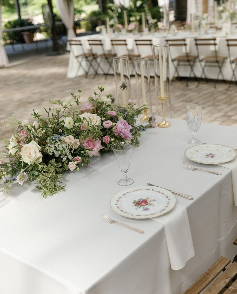 As for budget allocation for wedding flowers, investment can vary widely. According to recent data from The Wedding Report, couples planning a 200-300 person event typically allocate between $4,743 for flowers and decorations, which accounts for approximately 7.4% of the total wedding budget. Of course, this is simply an average, and florals can become more or less expensive depending on the scope of the design, the floral design house hired, and the arrangements needed. Many florists may also require a minimum spend of $5000 – $10,000 depending on the season, but there are also talented floral designers who are more affordable without a minimum spend.