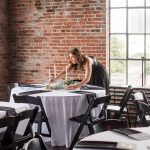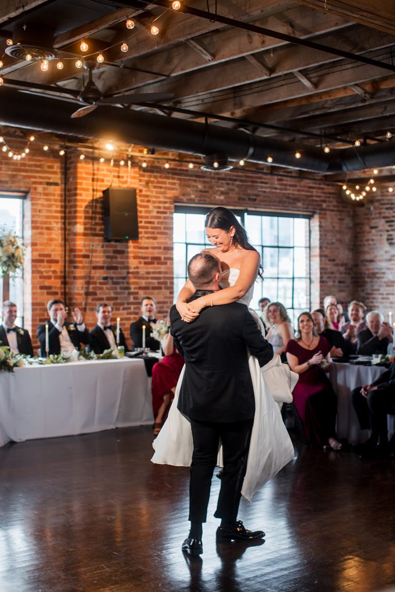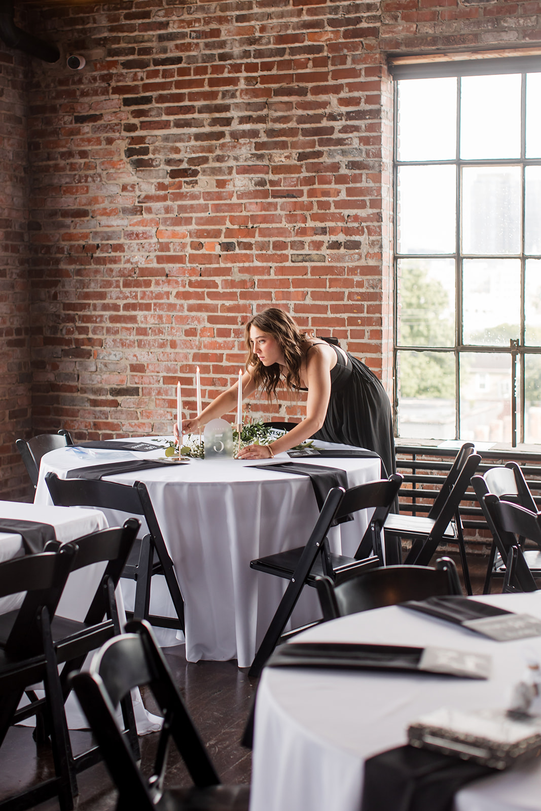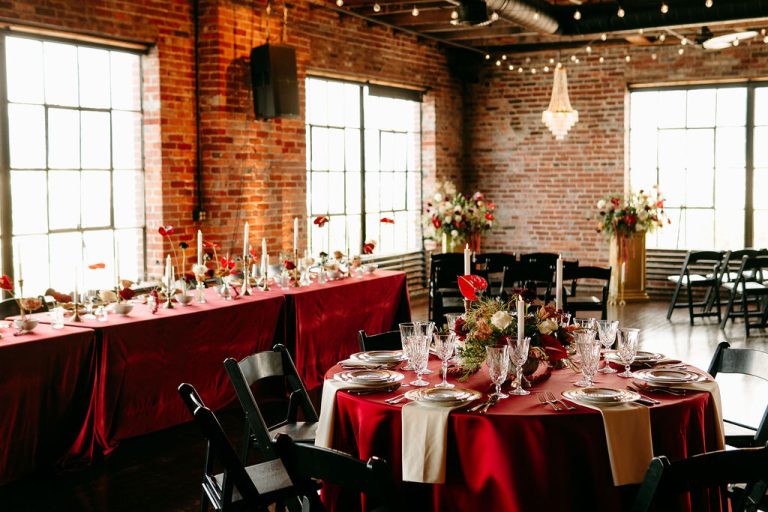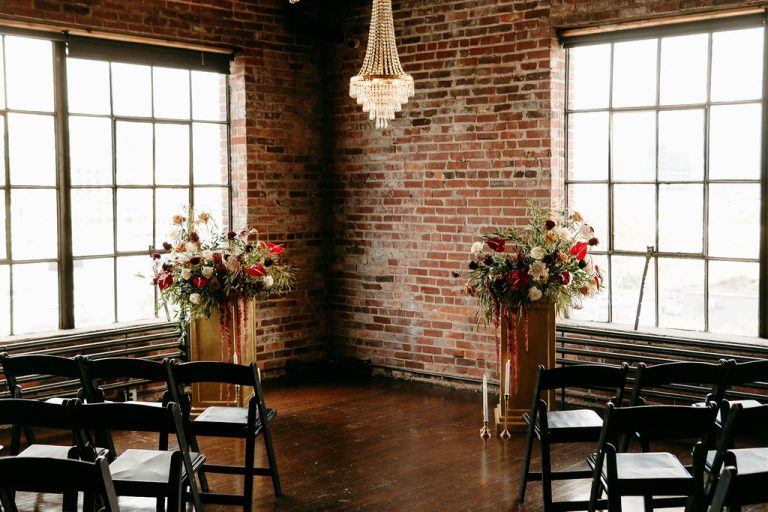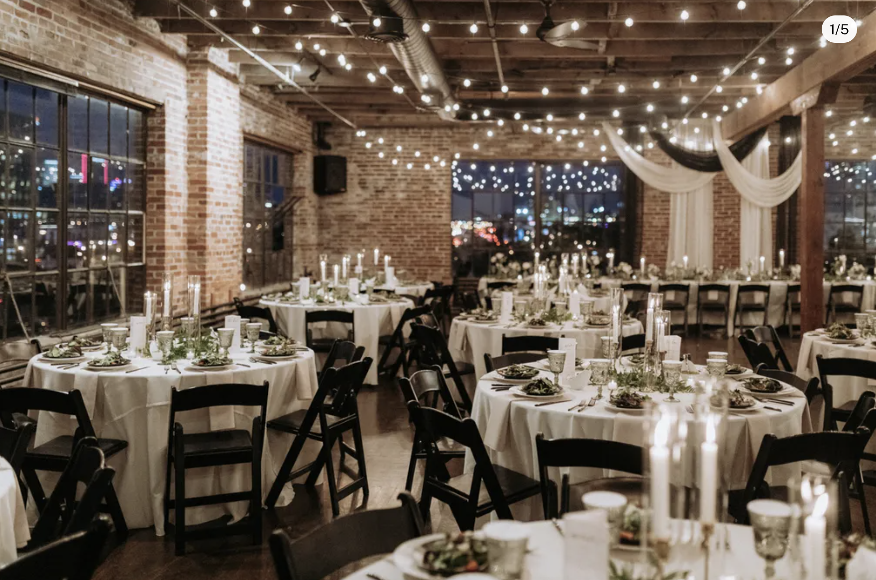 Room With A View at Marathon Village, is a gorgeous venue located in downtown Nashville. Our event space is located in a 115-year-old factory with a historic Marathon Car Museum in the main lobby. Its antique stairs, original flooring, exposed brick walls, high ceilings, & large windows overlooking the downtown skyline is the most romantic backdrop for your wedding! On the 3rd floor, its capacity is 150 seated, 200 standing. In house we are fully equipped with an elevator, parking, round tables, folding tables, cocktail tables, & chairs. In the space you also have access to our catering kitchen and bar. We also provide two Ready Rooms, which offer seating, a full-size mirror, counter space, a closet, and a large wall-mounted makeup mirror. Room With A View has an open vendor policy, so your special day 100% reflects you.